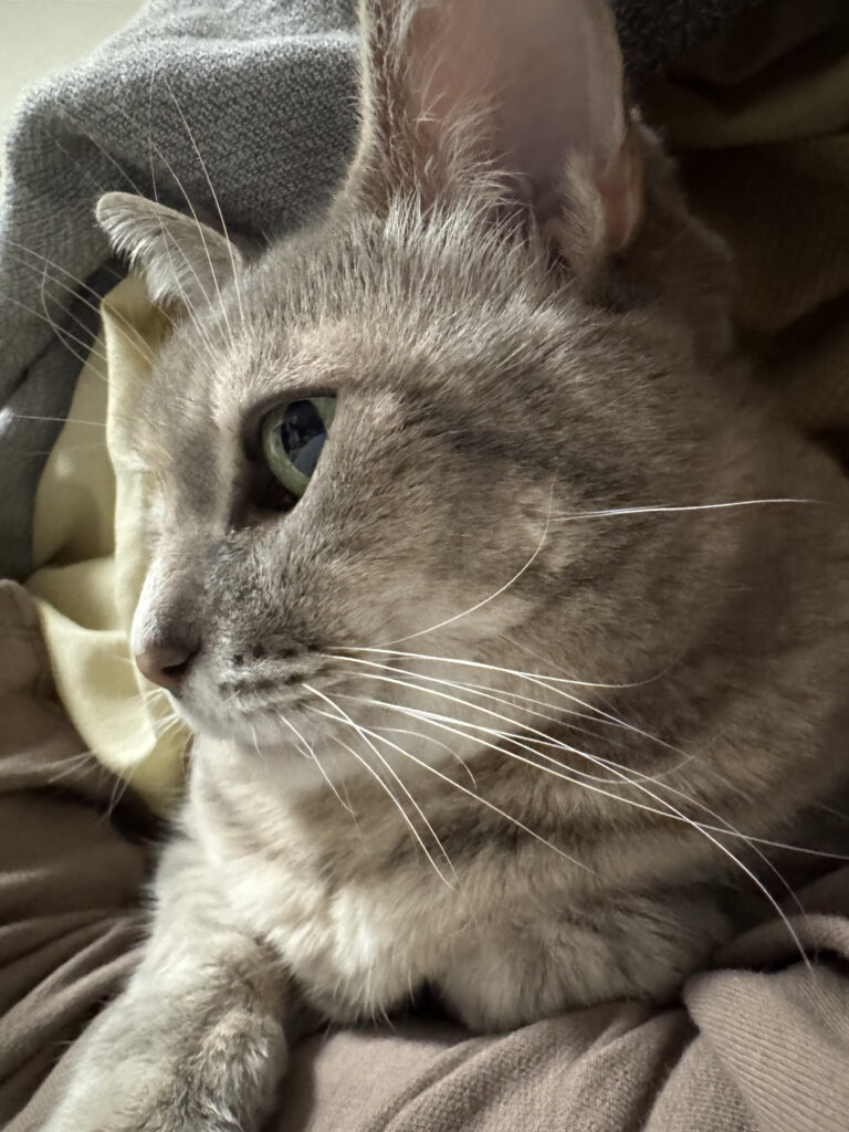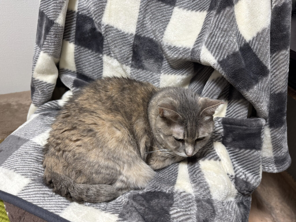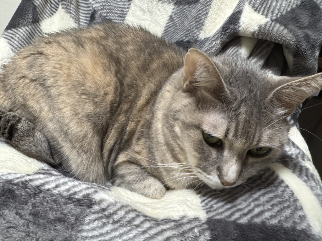 でも完全にもぐるのは嫌で、常に顔は外に出しておきたい勢。当たり前のようにニンゲンを布団をもちあげ係に任命してくる。かしこい。