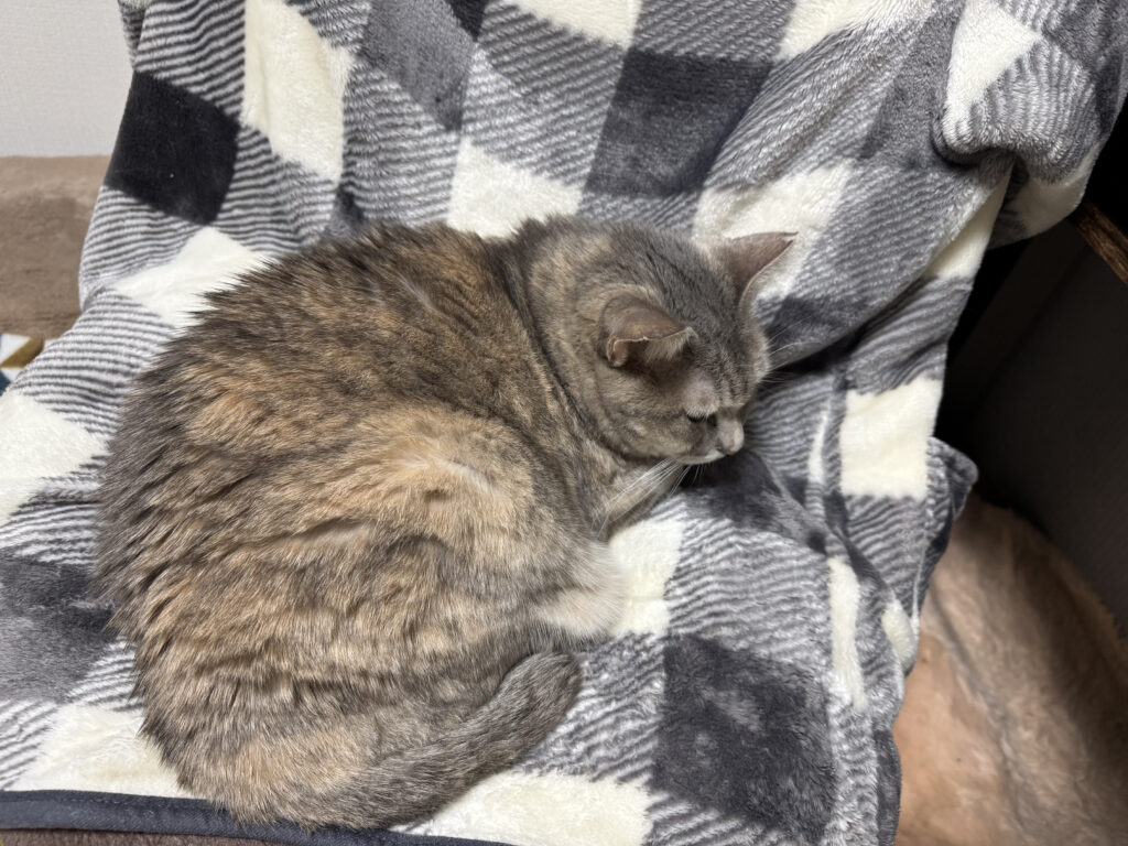 猫コタツの電源を入れると、フランがその上から動かなくなって、水を飲む量まで減るからもう少しひっぱりたい。とりあえずニンゲン用のフリースの上着を提供することに。しばらくはこれで許されたい。