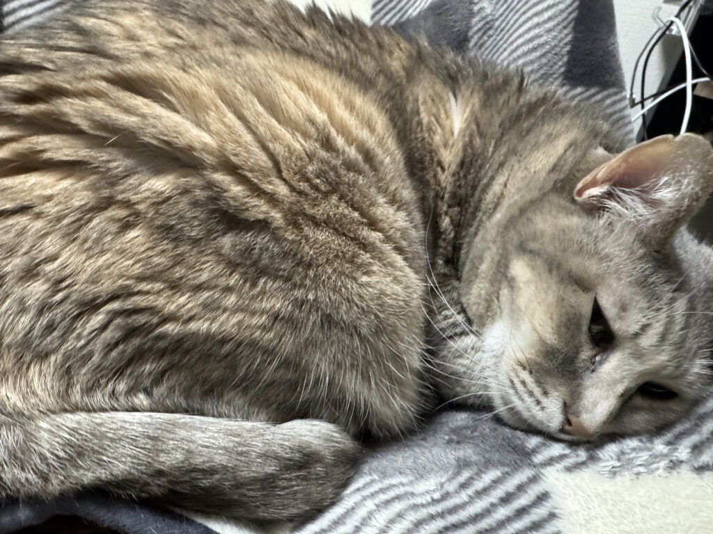 あとはまぁ、毛並みのパサついてきた感じとかに加齢を感じる今日このごろ。長生きしてくれよな。